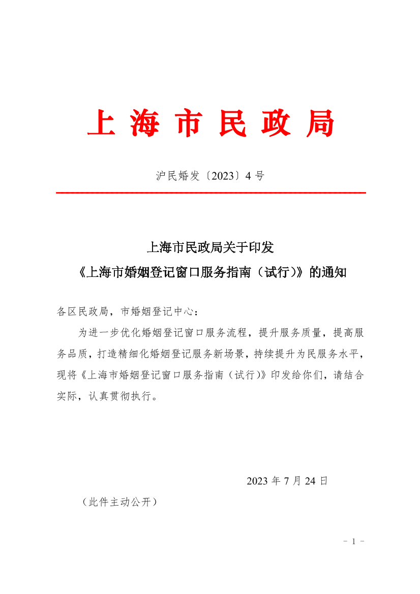 上海市民政局关于印发《上海市婚姻登记窗口服务指南(试行)》的通知 ( 2023-08-04 )