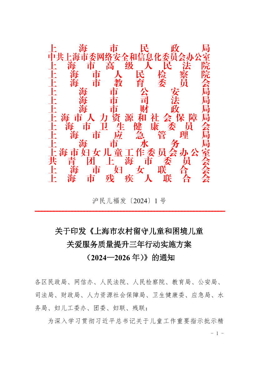 | 文件编号: | 沪民儿福发〔2024〕1 号 | 公开类别: | 主动公开 |