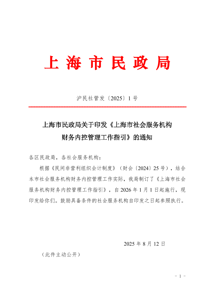 上海市民政局关于印发《上海市社会服务机构财务内控管理工作指引》的通知 ( 2025-08-13 )